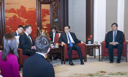 Chinese Premier Li Keqiang (R) meets with U.S. Tesla CEO Elon Musk in Beijing, capital of China, Jan. 9, 2019. Photo: Xinhua