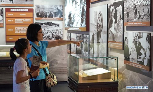 Visitors view exhibits during an exhibition marking the 60th anniversary of the campaign of democratic reform in Tibet, at the Museum of Tibetan Culture in Beijing, capital of China, July 18, 2019. (Xinhua/Shen Bohan)