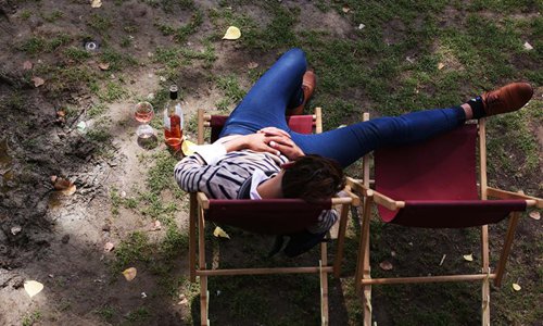 A man rests during the Paris Plage at the banks of River Seine, in Paris, France, July 17, 2019. The annual Paris Plage (Paris beach) event is held from July 6 to Sept. 1, 2019. (Xinhua/Gao Jing)