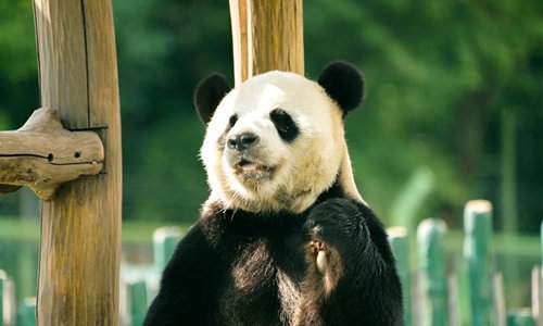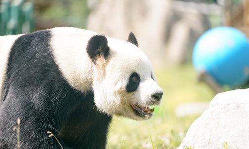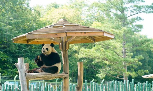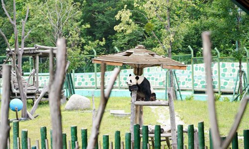 Giant panda Youyou plays at Giant Panda House in the ski resort of Yabuli in northeast China's Heilongjiang Province, July 18, 2019. Giant pandas Sijia and Youyou came from Sichuan Province to Yabuli in July 2016, and now they have adapted well to the local climate. (Xinhua/Wang Song)