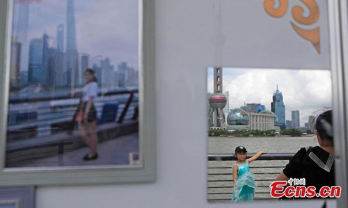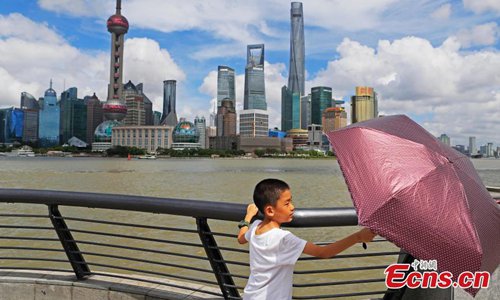 The skyline near the Bund and Lujiazui areas in Shanghai, July 18, 2019. According to the Shanghai Meteorological Department, Typhoon Danas, the fifth typhoon of the year, may bring showers to the metropolis on Friday evening. (Photo: China News Service/Yin Liqin)