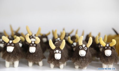 A craftswoman makes felt crafts at a studio in Tilekmat Village in Issyk-Kulskaya, Kyrgyzstan, July 17, 2019. Kyrgyzstan is famous for producing natural felt. With the traditional felt handicrafts getting more and more popular, many private entrepreneurs have been involved in this industry recently. Photo:Xinhua