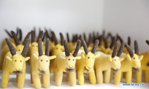 Photo taken on July 17, 2019 shows felt crafts at a studio in Tilekmat Village in Issyk-Kulskaya, Kyrgyzstan. Kyrgyzstan is famous for producing natural felt. With the traditional felt handicrafts getting more and more popular, many private entrepreneurs have been involved in this industry recently. Photo:Xinhua