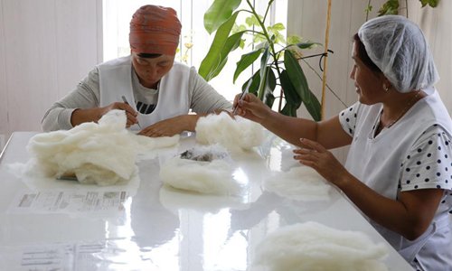 Photo taken on July 17, 2019 shows felt materials at a studio in Tilekmat Village in Issyk-Kulskaya, Kyrgyzstan. Kyrgyzstan is famous for producing natural felt. With the traditional felt handicrafts getting more and more popular, many private entrepreneurs have been involved in this industry recently. Photo:Xinhua