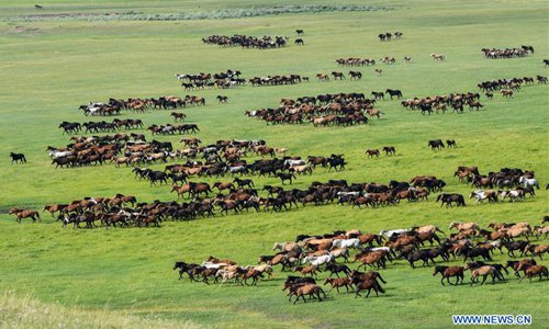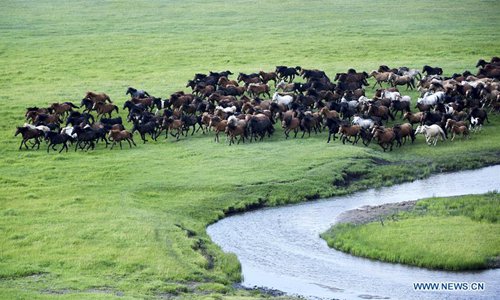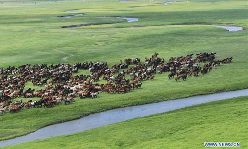 Horses run on a prairie during an equine culture event in East Ujimqin Banner of Xilingol League, north China's Inner Mongolia Autonomous Region, July 20, 2019. (Xinhua/Liu Lei)