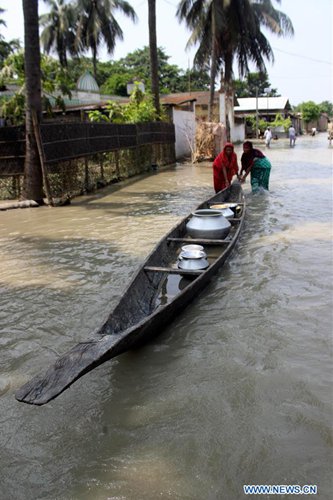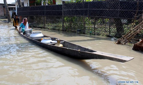 Villagers evacuate by boat to a safer place as the flood caused by incessant rain hits Hajo in India's northeastern state Assam, on July 19, 2019. The combined death toll in devastating floods in India's northeastern state of Assam and eastern state of Bihar has gone up to 119, official sources told Xinhua on Friday. (Xinhua/Stringer)