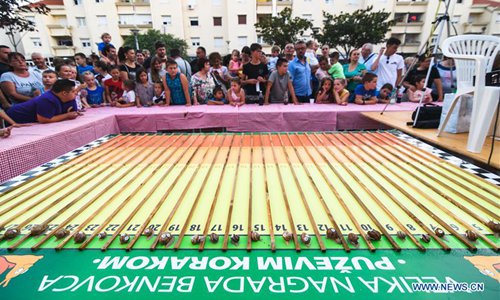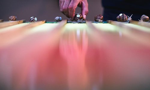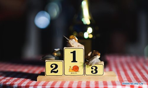 Snails compete in the 8th Croatian Snail Race Championship in Benkovac, Croatia, on July 20, 2019. (Xinhua/Marko Dimic)