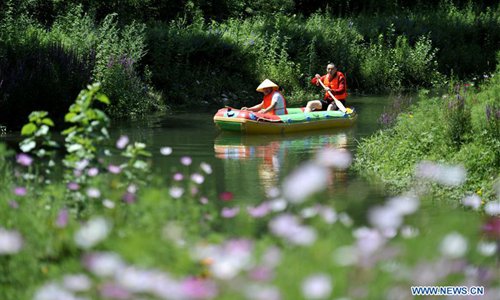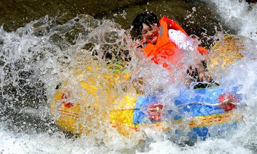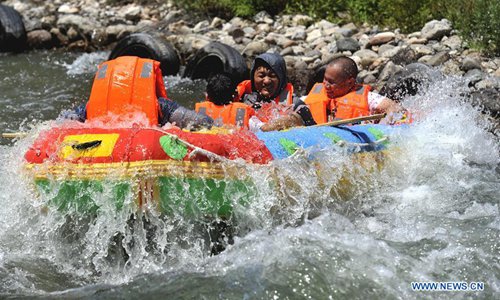 Tourists experience drifting at a scenic spot in Chengde, north China's Hebei Province, July 21, 2019. (Xinhua/Wang Xiao)