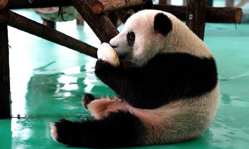 A giant panda is given ice treat at the Shanghai Zoo in east China's Shanghai, July 21, 2019. Measures have been taken by the Shanghai Zoo to help its animals fend off the summer heatwave. (Xinhua/Zhang Jiansong)
