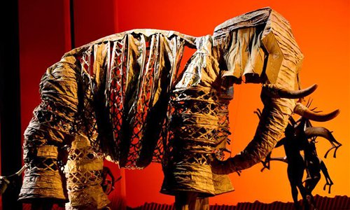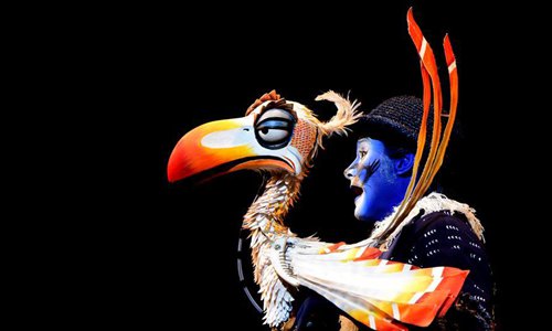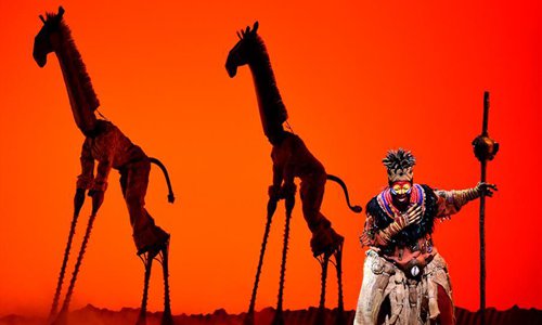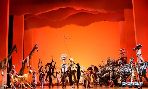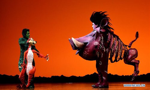 Actors perform during a rehearsal of "The Lion King" musical in Taipei, southeast China's Taiwan, July 23, 2019. Broadway musical "The Lion King" runs from July 20 to Aug. 4 at Taipei Arena. (Xinhua/Zhu Xiang)