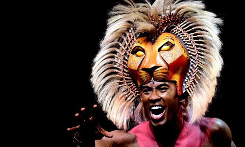An actor performs during a rehearsal of "The Lion King" musical in Taipei, southeast China's Taiwan, July 23, 2019. Broadway musical "The Lion King" runs from July 20 to Aug. 4 at Taipei Arena. (Xinhua/Zhu Xiang)