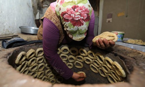 A woman makes "simit", a kind of Turkish traditional circular bread, in Malatya province, Turkey, on July 15, 2019. The simit is one of the most popular breakfast in Turkey. Residents of Malatya have a long history of using traditional tandoors to make simits. (Xinhua)