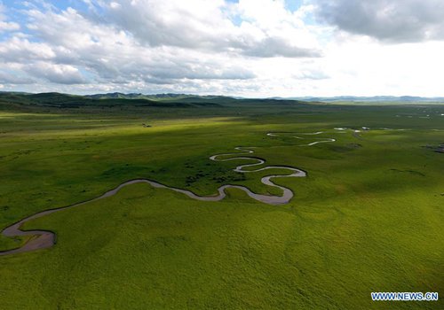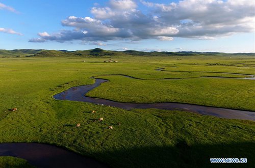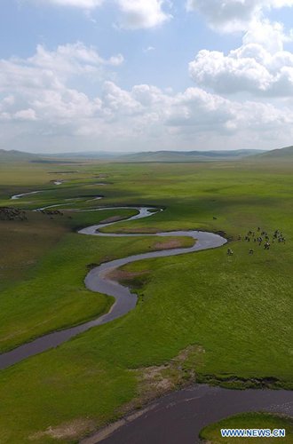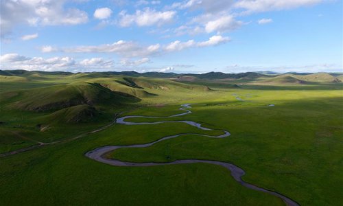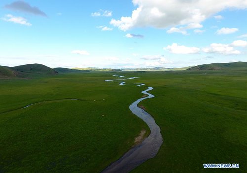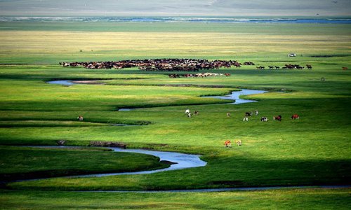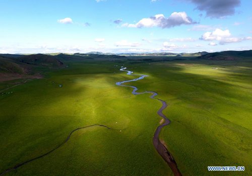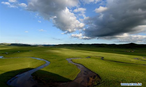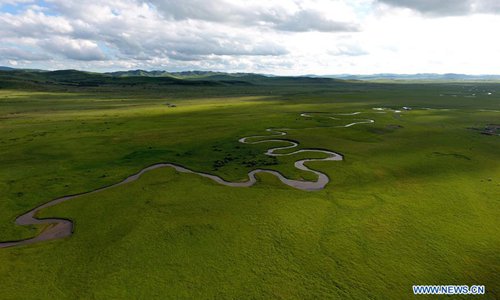 Aerial photo taken on July 20, 2019 shows the pasture scenery in East Ujimqin Banner, north China's Inner Mongolia Autonomous Region. (Photo: Xinhua)