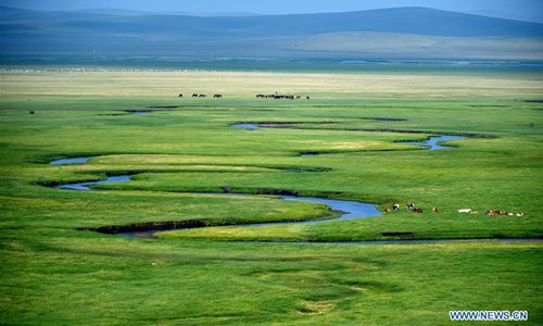 Photo taken on July 23, 2019 shows the pasture scenery in West Ujimqin Banner, north China's Inner Mongolia Autonomous Region.(Photo: Xinhua)