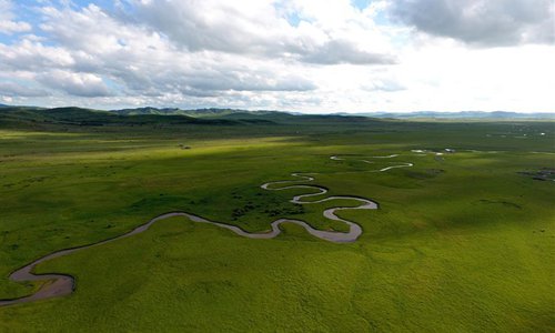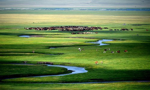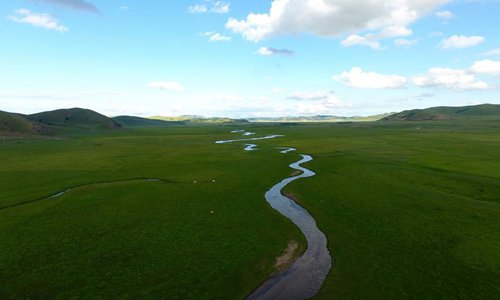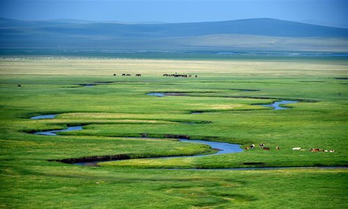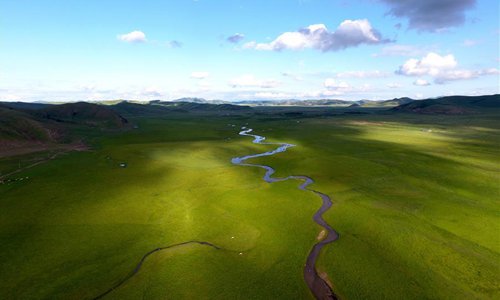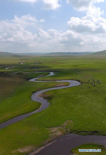 Photo taken on July 23, 2019 shows the pasture scenery in West Ujimqin Banner, north China's Inner Mongolia Autonomous Region. (Xinhua/Ren Junchuan)