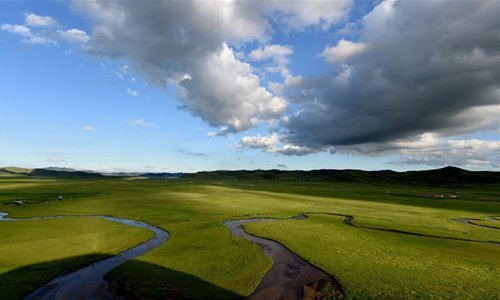 Photo taken on July 20, 2019 shows the pasture scenery in West Ujimqin Banner, north China's Inner Mongolia Autonomous Region. (Xinhua/Ren Junchuan)