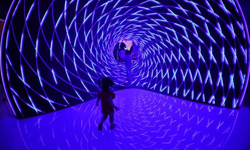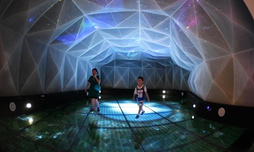 Children experience the black hole model at the astronomical museum in Pingtang during summer vacation in southwest China's Guizhou Province, July 24, 2019. (Xinhua/Yang Wenbin)