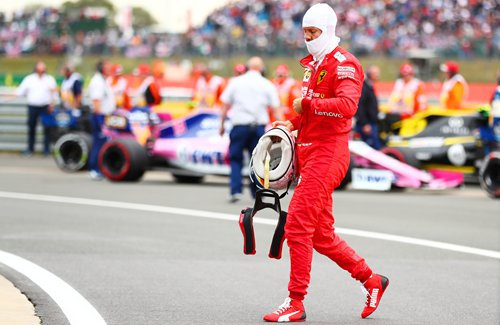 Ferrari driver Sebastian Vettel leaves his car after the British Formula One Grand Prix at the Silverstone racetrack in England on July 14. Photo: VCG