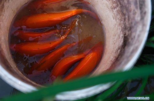 Photo taken on July 25, 2019 shows fish caught by farmers in rice fields in Xiaozhoushan Township of Qingtian County, east China's Zhejiang Province. The price of the fish is about 60 yuan (8.7 U.S. dollars) per 500 grams due to slow growth and eco-friendliness. Since 2013, following the principle of green development, local authorities have been giving full play to over 4000 mu (about 267 hectares) terraced fields. By relying on agriculture with a history over 1000 years, Qingtian county promotes integration of agriculture, tourism and culture to develop sustainable agriculture and countryside tourism, and boost farmers' income. (Photo: Xinhua)
