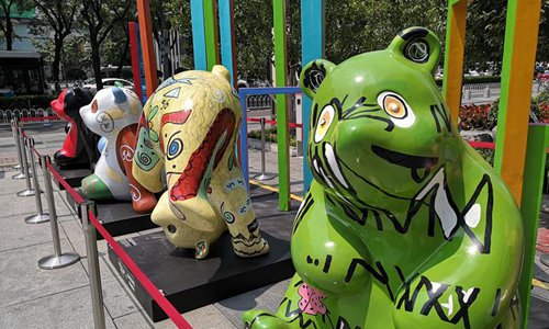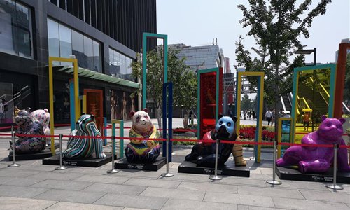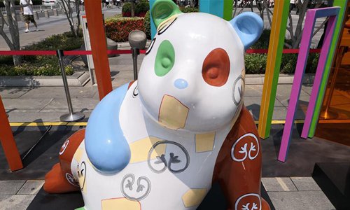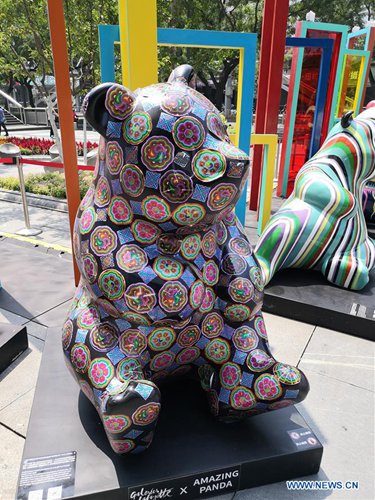 Photo taken with a mobile phone shows stylish panda near Xidan in Beijing, capital of China, July 26, 2019. (Xinhua/Song Meili)