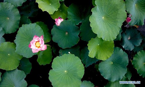 Aerial photo taken on July 17, 2019 shows lotus flowers in Nianjia Lake in Changsha, central China's Hunan Province. (Xinhua/Chen Zeguo)