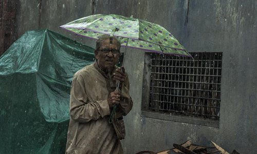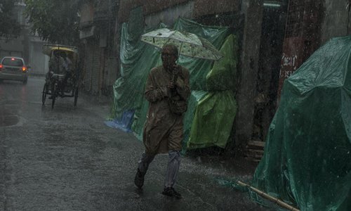 A man walks in heavy rain in Kolkata, India, on July 28, 2019. India is currently having its monsoon season that will last till September. (Xinhua/Tumpa Mondal)