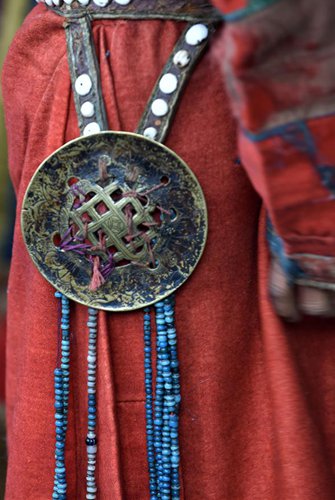 Photo taken on July 22, 2019 shows a waist decoration of Burang clothes in Ali, southwest China's Tibet Autonomous Region, July 22, 2019. Burang clothes, traditional wearing in Burang County of Ali, has a history of more than 1,000 years. One suit may weigh about 25 kilograms because it is decorated with gold, silver, pearls and other jewels. (Xinhua/Chogo)