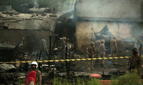 Yousaf Awan, an eyewitness who entered the core site after 1 hour of the accident, told Xinhua that the plane crashed on a house and half of the house totally collapsed, severely damaging adjoining five to six makeshift houses surrounding it.
