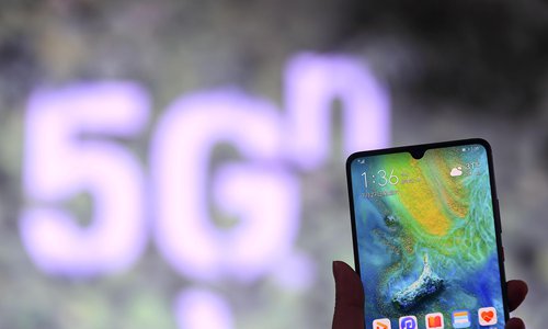 A person holds a 5G Huawei smartphone in Taiyuan, North China's Shanxi Province on Saturday. Photo: VCG