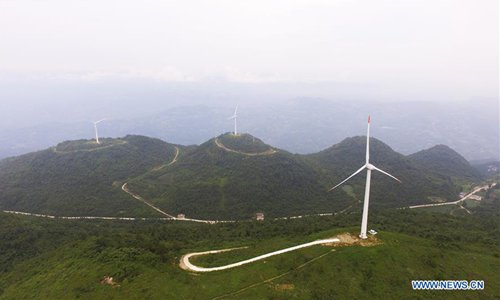 Aerial photo taken on July 30, 2019 shows the scenery of the Yunyang Longgang Geological Park in Chongqing, southwest China. (Xinhua/Wang Quanchao)