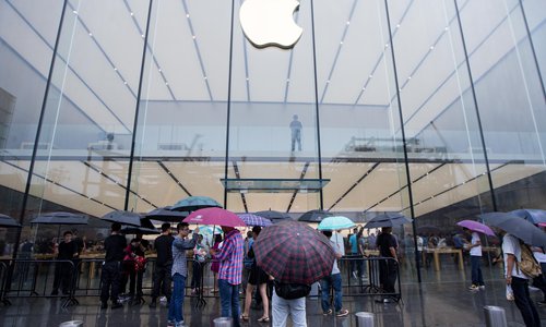 Consumers at an Apple store in Hangzhou, capital of East China's Zhejiang Province File photo: VCG