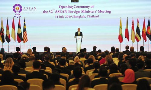 Thai Foreign Minister Don Pramudwinai addresses the opening ceremony of the 52nd ASEAN Foreign Ministers' Meeting in Bangkok, Thailand, July 31, 2019. The opening ceremony of the 52nd ASEAN Foreign Ministers' Meeting was held here. (Xinhua/Rachen Sageamsak)