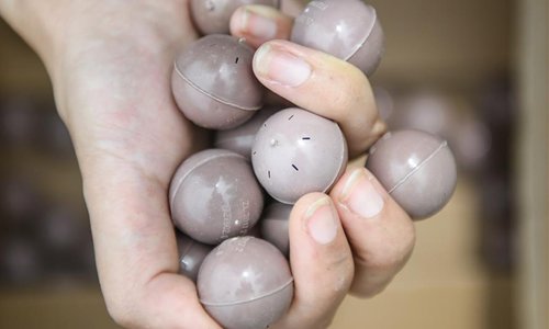 A staff member of Wuyuan Farm shows eggs of trichogramma, a kind of pests' natural enemy, in Huinan County, northeast China's Jilin Province, July 30, 2019. Huinan is one of the leading rice producing areas in northeast China. In Huinan's Chaoyang Township, local authorities take various measures to boost green and organic agricultural development including raising ducks in rice fields, raising pests' natural enemy, spraying fungicides and disinfesting fields by solar power lamps. The rice production wins market share due to better quality and green development. (Xinhua/Wang Haofei)