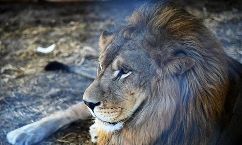 A lion is seen at the "Sham Gathers Us" (Sham means Damascus) festival in Damascus, capital of Syria, July 30, 2019. There are a few tigers and lions left at the Damascus Zoo. These animals were brought to the festival for people to watch. (Photo by Ammar Safarjalani/Xinhua)