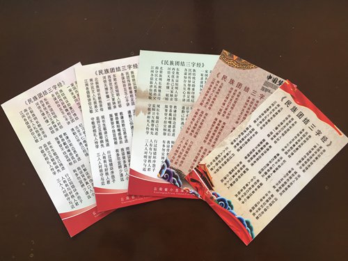 The prison also teaches the inmates the meaning of ethnic unity through ancient Chinese classics like the "Three Character Classic," or San Zi Jing, and gives them brochures on ethnic policies.