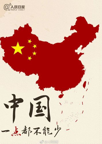A map of China with caption reading "China without any part left out" Photo: People's Daily Sina Weibo account