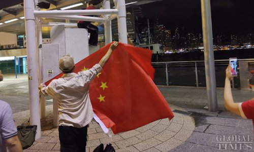Patriotic Chinese raise national flag at HK Victoria Harbor