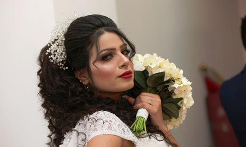 A model presents a creation by Iraqi designers Ahmed al-Budairi and Inas al-Tamimi during a fashion show in Baghdad, Iraq, on Aug. 3, 2019. (Xinhua/Khalil Dawood)