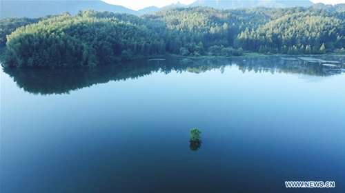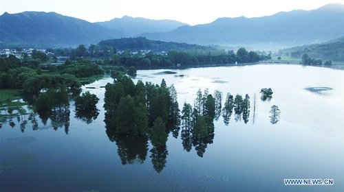 Aerial photo taken on Aug. 4, 2019 shows the morning scenery near the Hongcun scenic spot in Yixian County, east China's Anhui Province.(Photo: Xinhua)