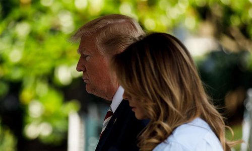 US President Donald Trump (L) and his wife Melania Trump arrive at the White House in Washington D.C. the United States, Aug. 4, 2019. Donald Trump said Monday the United States must condemn bigotry, racism and white supremacy in his first formal remarks from the White House, after two mass shootings within 13 hours over the weekend in Texas and Ohio. (Photo by Ting Shen/Xinhua)