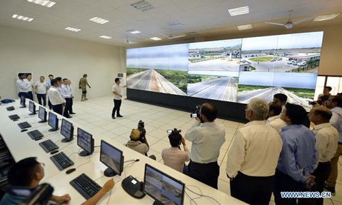 Photo taken on Aug. 5, 2019 shows the monitoring room of Sukkur-Multan Motorway in central Pakistan's Multan. The construction of the 392-km Sukkur-Multan Motorway under the China-Pakistan Economic Corridor (CPEC) has been completed. The motorway known as M5 in Pakistan was designed for speeds of up to 120 kmh with a total investment around 2.89 billion U.S. dollars. (Xinhua/Ahmad Kamal)