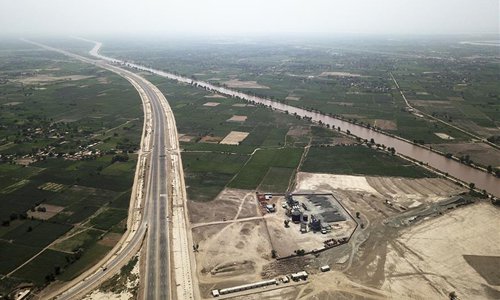 Photo taken on Aug. 5, 2019 shows a service area of Sukkur-Multan Motorway in central Pakistan's Multan. The construction of the 392-km Sukkur-Multan Motorway under the China-Pakistan Economic Corridor (CPEC) has been completed. The motorway known as M5 in Pakistan was designed for speeds of up to 120 kmh with a total investment around 2.89 billion U.S. dollars. (Xinhua/Ahmad Kamal)