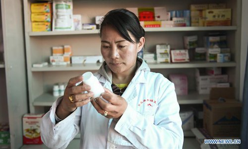 Village doctor Zhoima examines the medicine at her clinic in Wuqang Village of Dongmar Township in Rutog County, Ngari Prefecture, southwest China's Tibet Autonomous Region, Aug. 3, 2019. Born in 1979, Zhoima has been a village doctor in Wuqang for more than 20 years. It is estimated that each year she provides more than 600 diagnoses and treatment to villagers, regardless of the weather and journey. (Xinhua/Jigme Dorje)