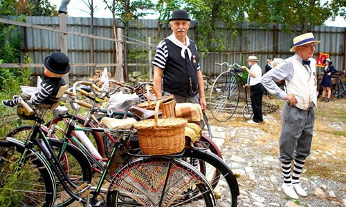 Riders and their historical bikes are seen during a commemorative event in Kutna Hora, the Czech Republic, Aug. 10, 2019. Dozens of cyclists in traditional clothing rode historical bikes and passed through the central Czech city of Kutna Hora on Saturday afternoon to celebrate the 150th anniversary of the first bike race on the Czech land. The first cycling race in Bohemia was said to be held in Kutna Hora on Aug. 8, 1869 on the road between Kutna Hora and Sedlec. (Photo by Dana Kesnerova/Xinhua)