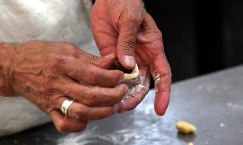 A Syrian man makes date cookies in a sweet shop in Damascus, Syria, on Aug. 8, 2019. Date cookies are traditional sweets for the upcoming Eid al-Adha, or the Feast of the Sacrifice, in Syria. (Photo by Ammar Safarjalani/Xinhua)