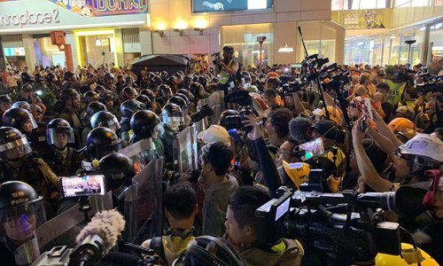 The Global Times reporters saw some protesters, who changed their black shirts and pretended to be passers-by, shouting out insulting words and slogans at police officers.