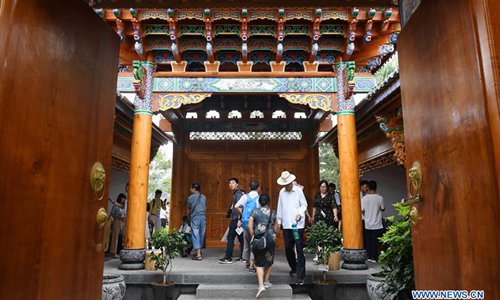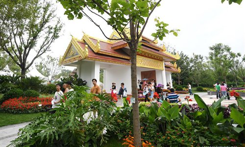 People visit the Yunnan Garden at the Beijing International Horticultural Exhibition in Beijing, capital of China, Aug. 11, 2019. The "Yunnan Day" event was held at the Beijing International Horticultural Exhibition on Sunday. (Xinhua/Zhang Chenlin)