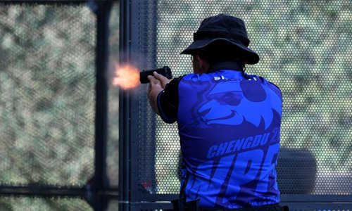 Members of a special police unit from Chengdu attend the shooting event during the 2019 World Police and Fire Games in Chengdu, Southwest China's Sichuan Province, Aug. 11, 2019. (Photo: China News Service/An Yuan)