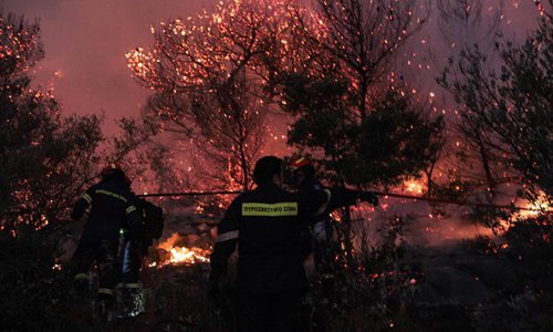 "The blaze is under control at the moment, but we fear possible flare-ups as the winds are picking up. At least for the time being it is contained and there were no injuries or casualties. Only a couple of houses have been damaged," Petros Filippou, deputy regional governor of Eastern Attica, told Xinhua and local media on site.