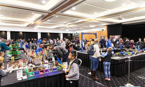 People view LEGO works at the Brick Expo in Canberra, capital of Australia, Aug. 11, 2019. Held in the Hellenic Club of Canberra, the two-day expo showcasing LEGO works attracted many visitors. (Photo by Liu Changchang/Xinhua)